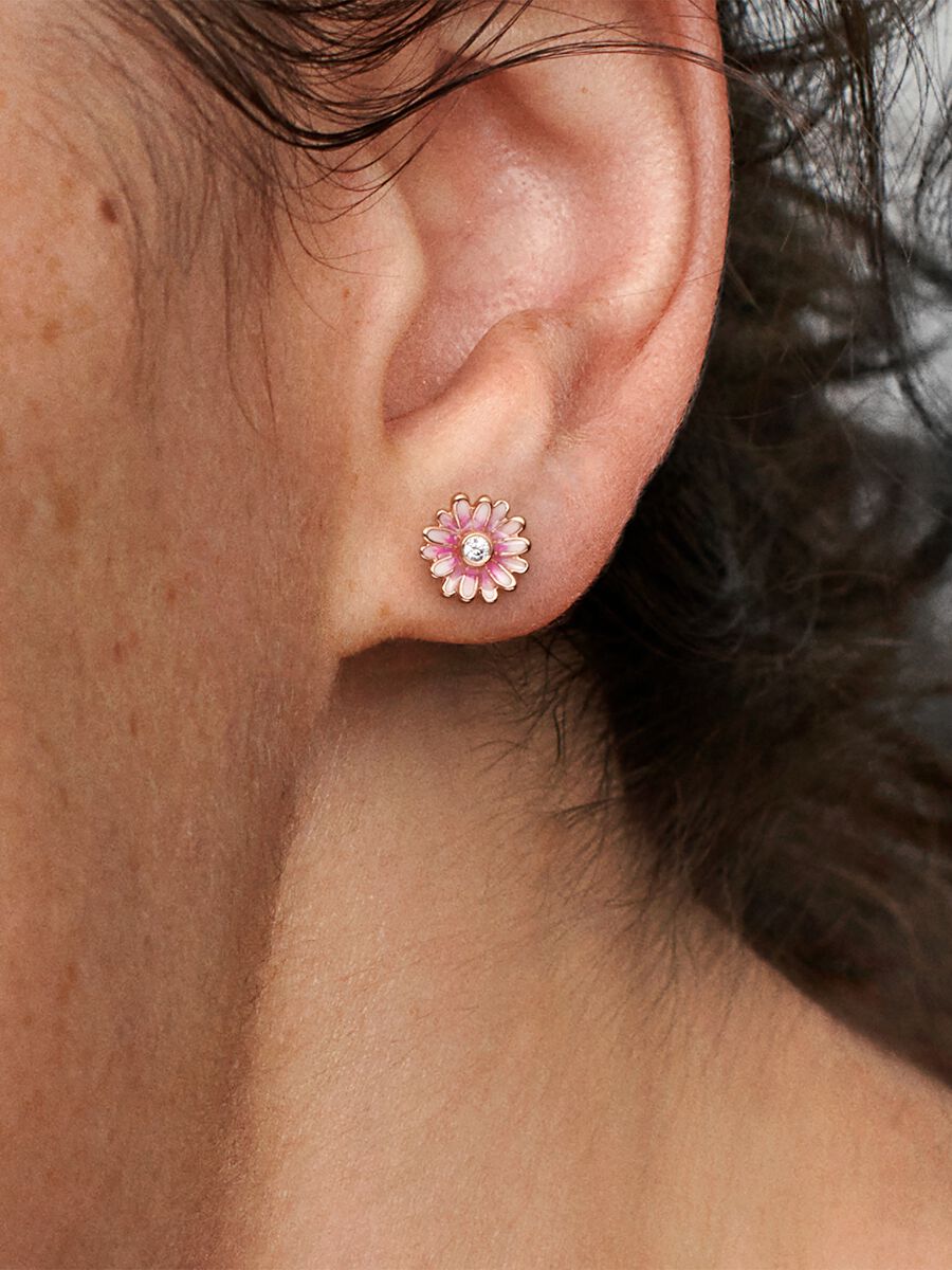 Bring spring into your look with these Pink Daisy Flower Stud Earrings and let your style bloom. The 14k rose gold-plated flower stud earrings feature cubic zirconia in their centre as well as hand-applied pink enamel, which adds delicate detail and makes them pop with life-like details. Wear together with other daisy-inspired pieces for an all-out flower look or gift them to the person who lights up your life.